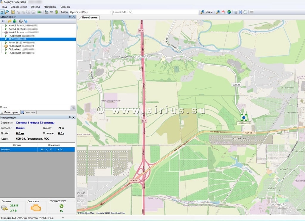 Был осуществлен монтаж терминала клиента, проведены его диагностика и обновление ПО, заменены sim-карта и GPS-антенна с поврежденным проводом. Установлен ДУТ с тарированием топливного бака объемом 202 литра.